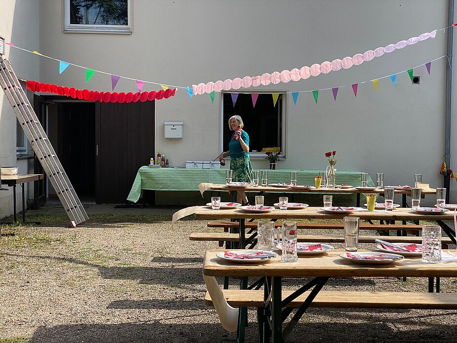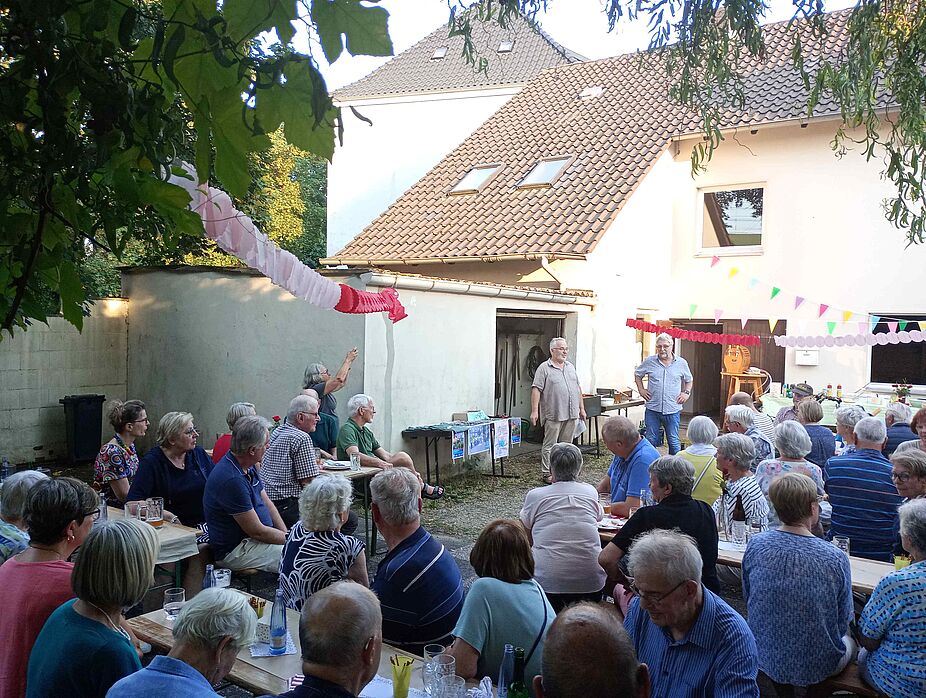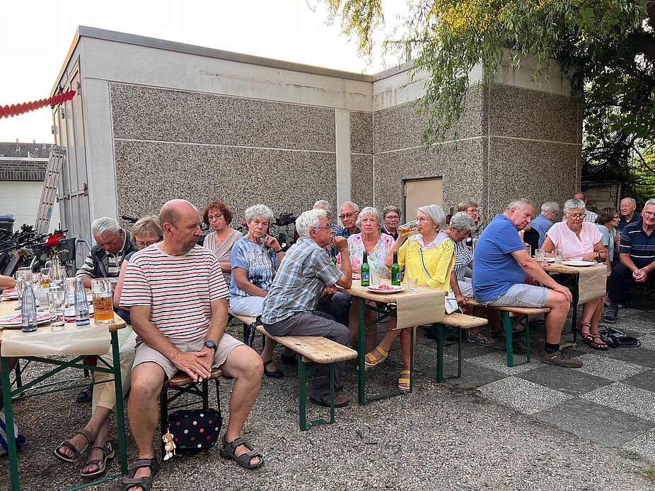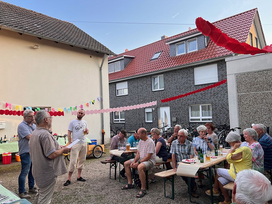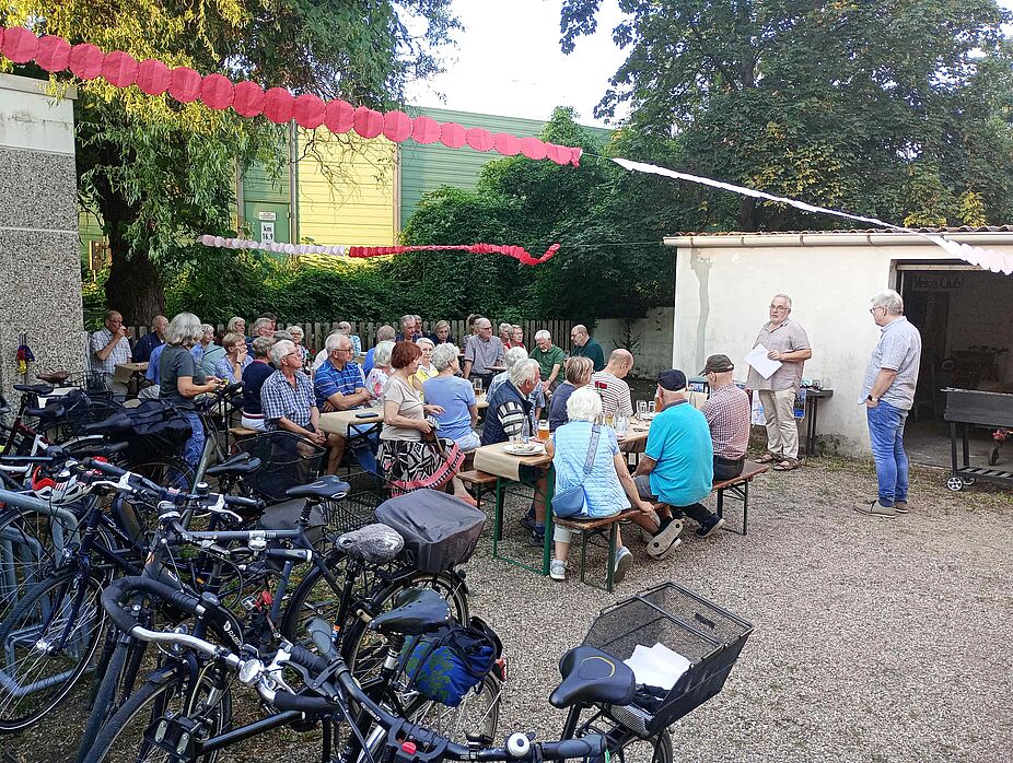 Seit vielen Jahren wird das Haus der Vereine vom ADFC genutzt. Am Mittwoch, den 14. August war im Innenhof bei gutem Wetter mächtig viel los. Viele fleißige Hände hatten Bierzeltgarnituren, eine Grillstation und ein langes Buffet aufgebaut.