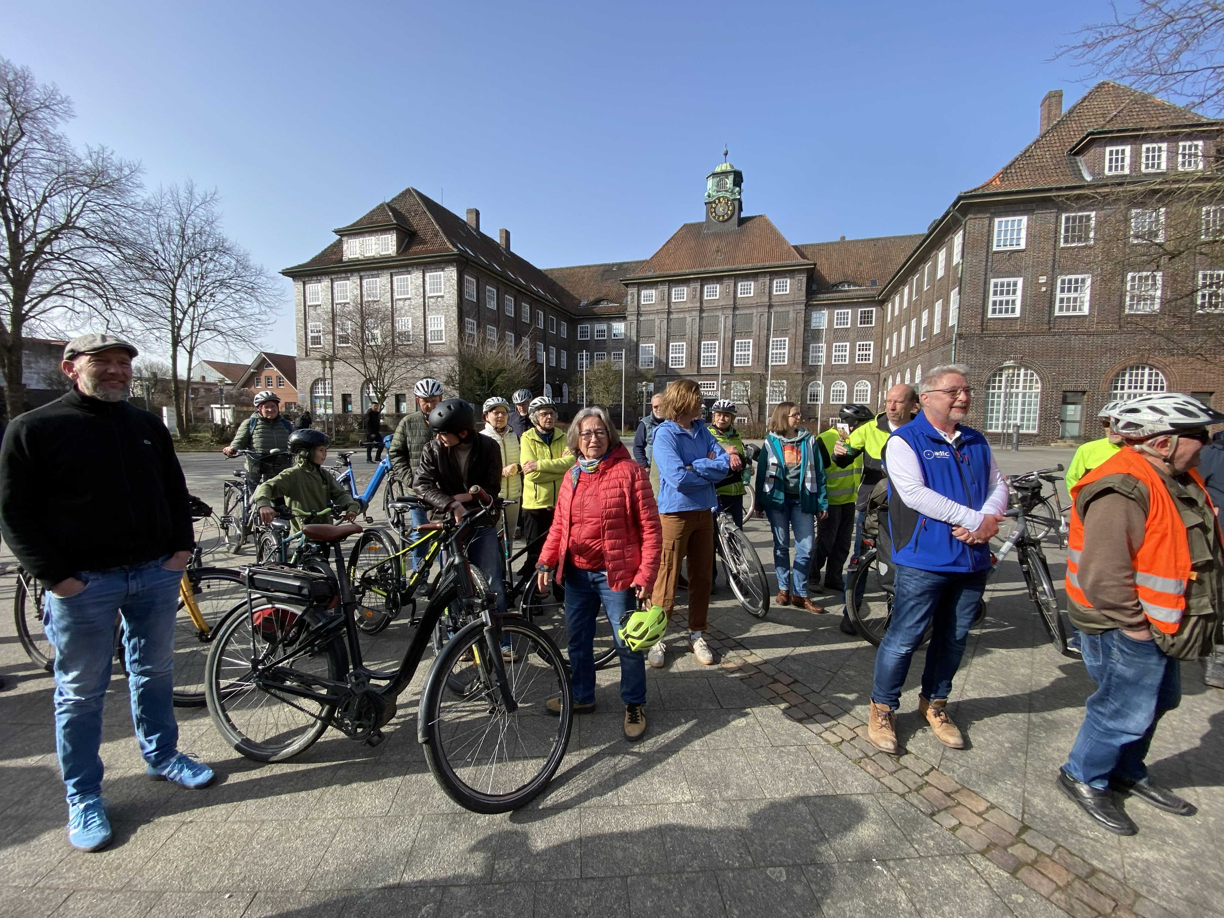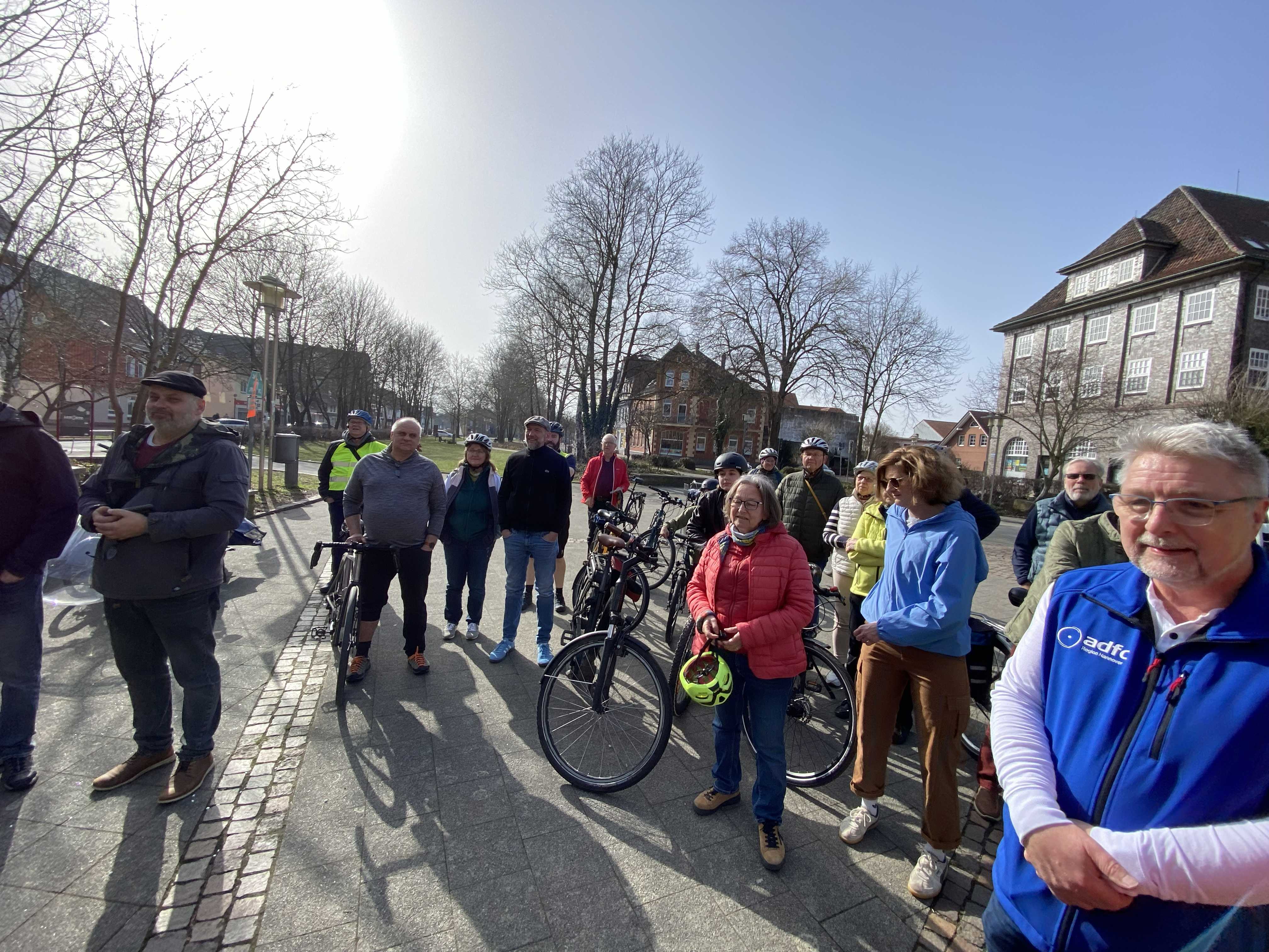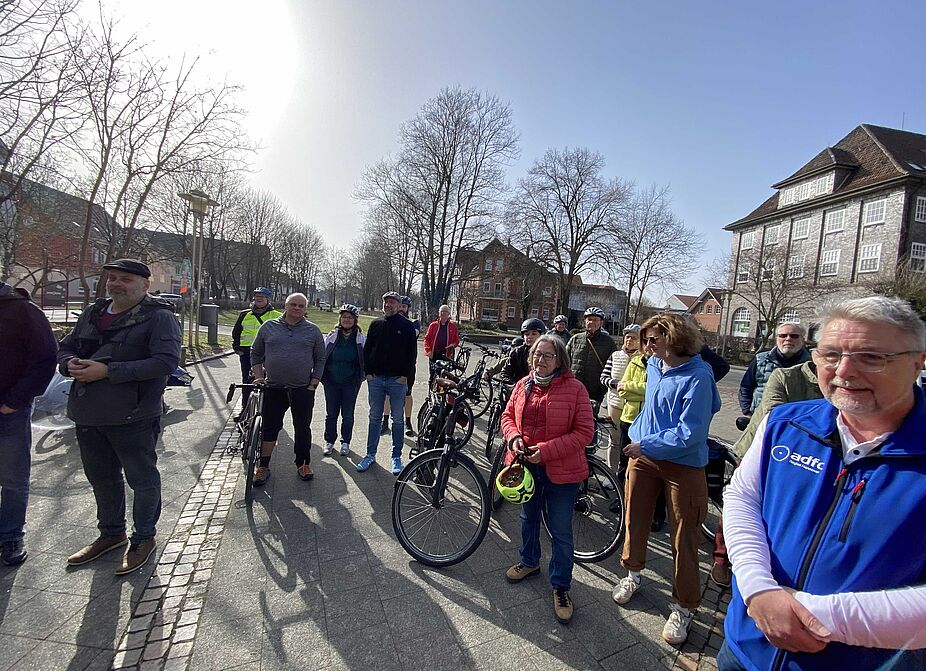 Anlässlich der Lehrter Umwelttage lud die Stadt Lehrte am Sa., 07.03.2026 zum "Großen Lehrter Anradeln" ein. Der Einladung von Fr. Schepelmann - Fachdienst Straßen und Verkehr - folgten über 40 Radelnde, davon viele Mitglieder des ADFC Lehrte/Sehnde.