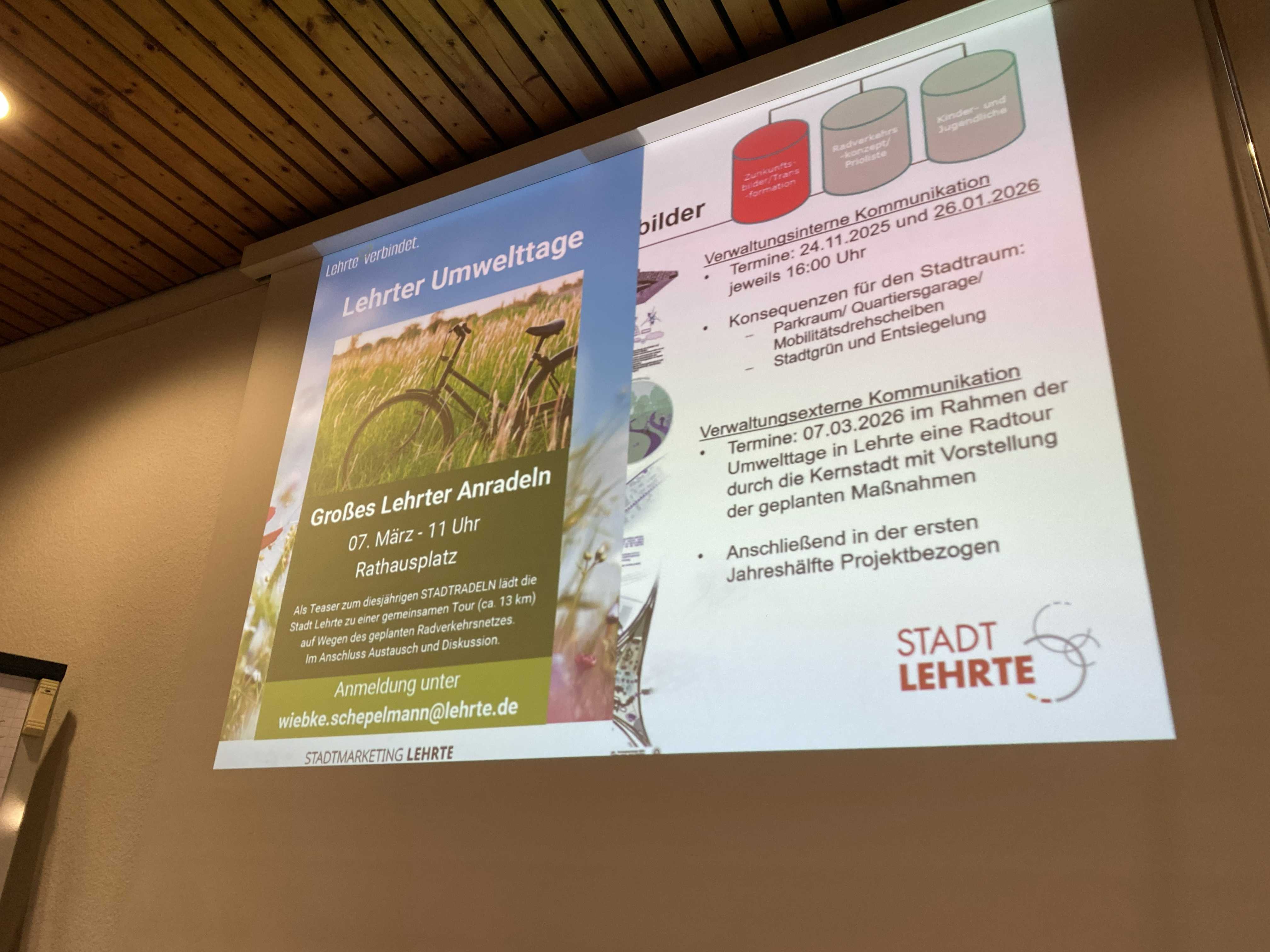 Als Gast wurde Conrad Vinken begrüßt. Er gab einen interessanten Einblick in die Verkehrsentwicklung und die Radwegeplanung der Stadt Lehrte. Weitere Informationen gab es zu "Lehrter Umwelttage" mit "Großes Lehrter Anradeln" am 07.03.2026, 11:00 Uhr, Rathausplatz.