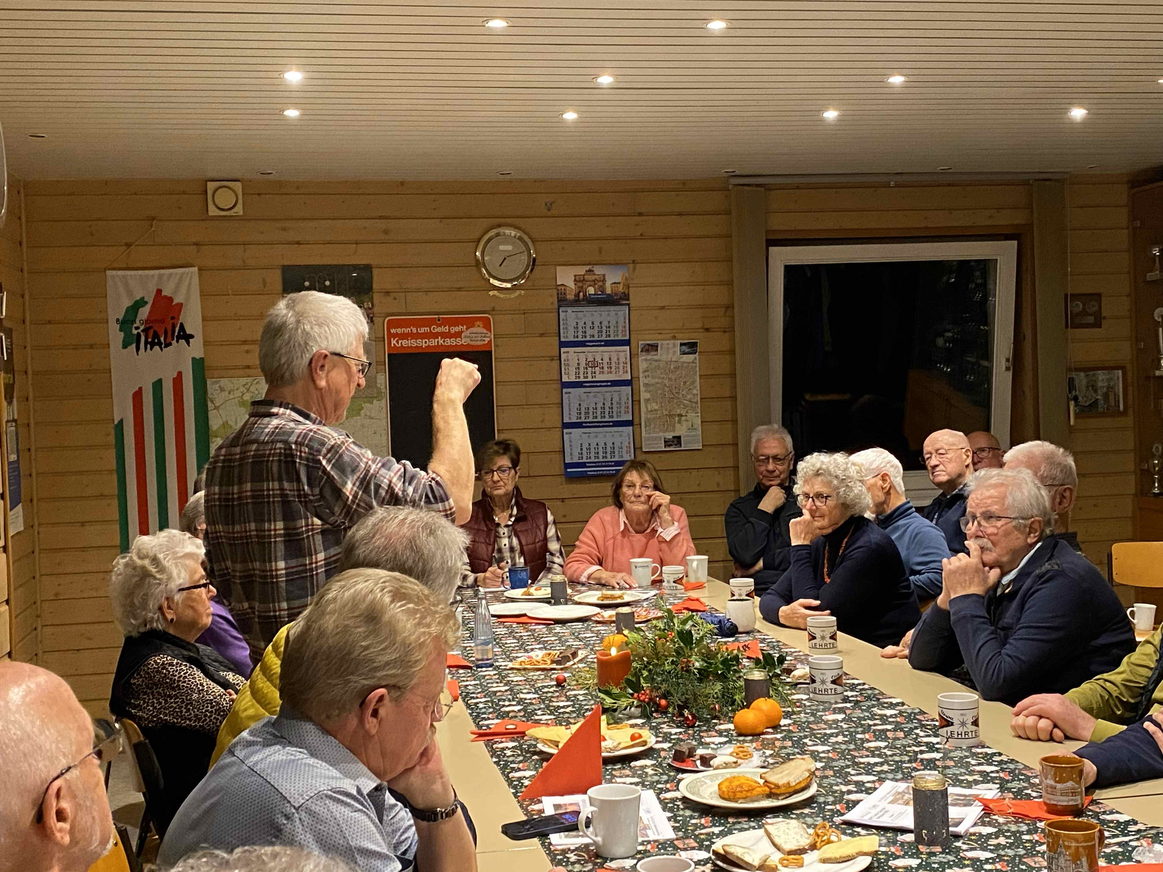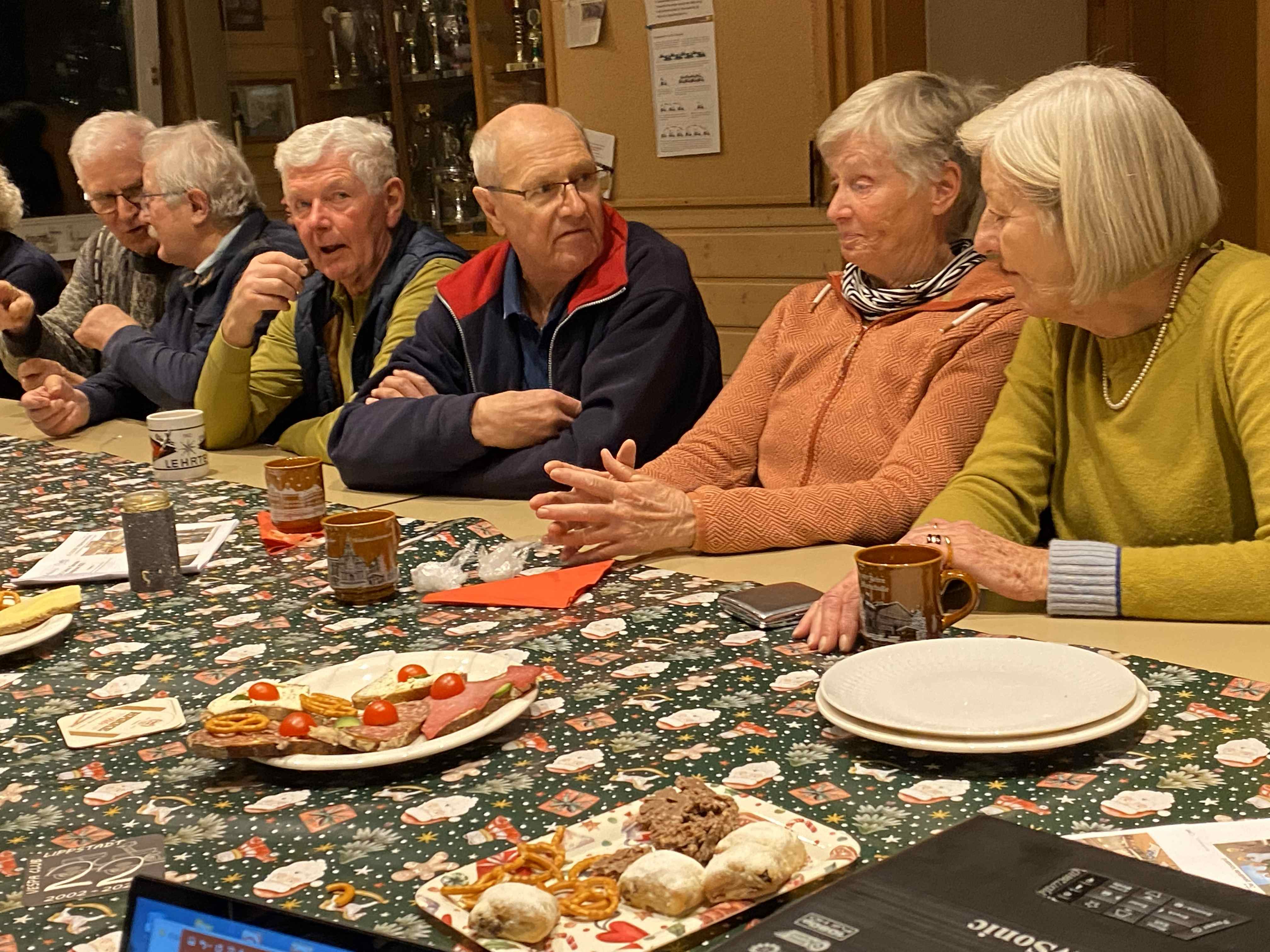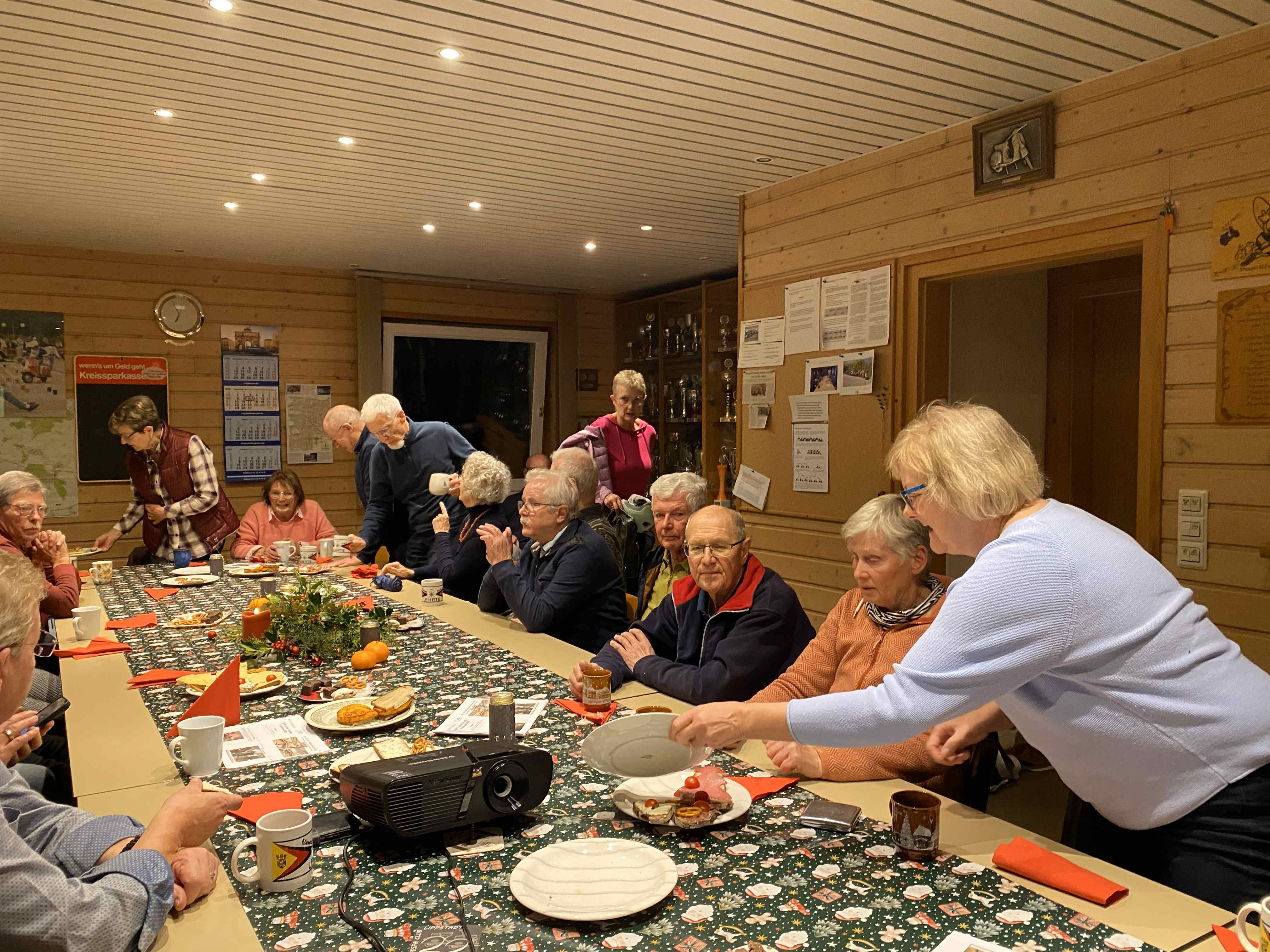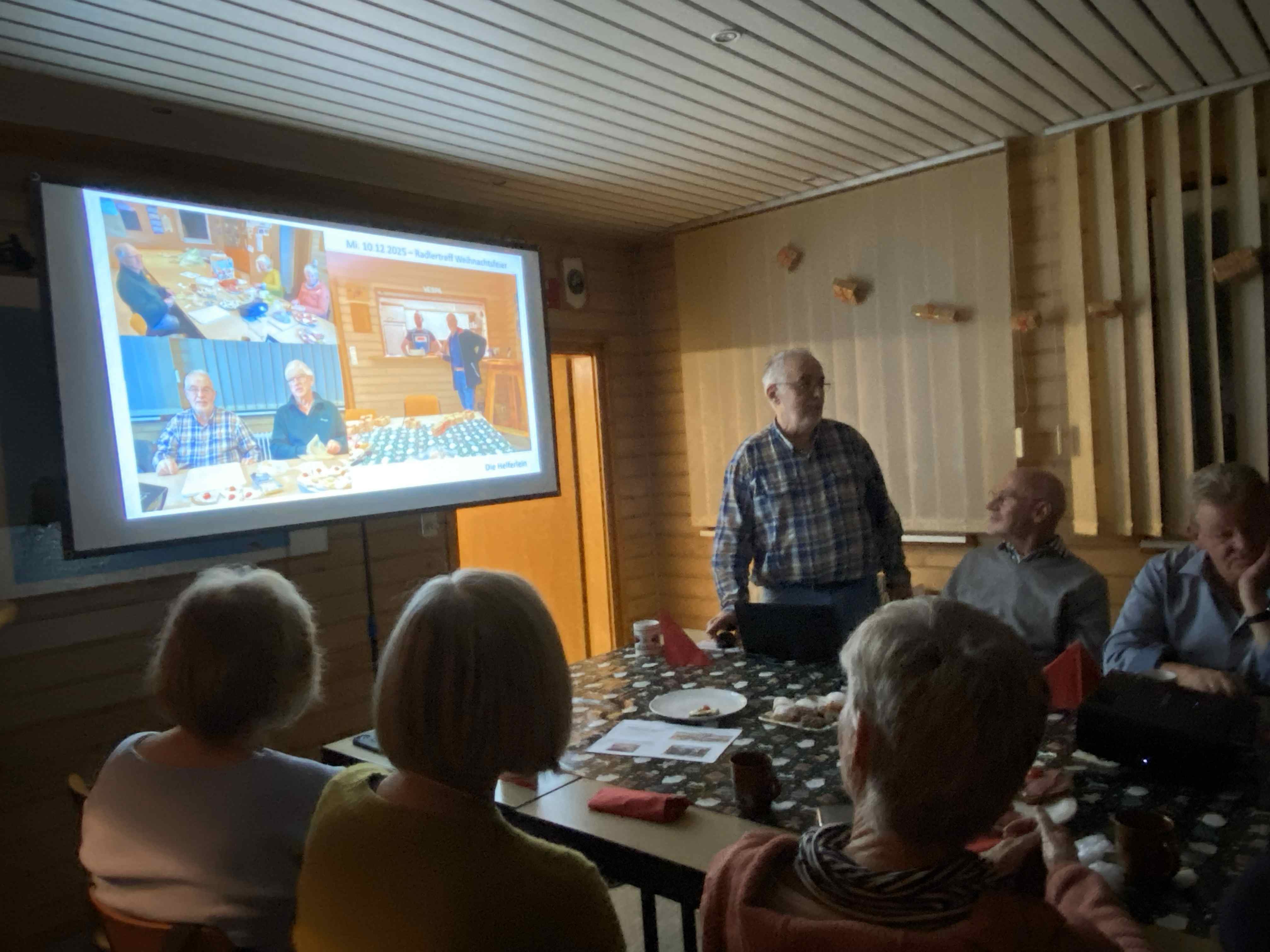 Vorbereitet wurde der Jahresabschluss von den fleißigen Helferinnen / Helfern. Ein weihnachtlich gedeckter Tisch sorgte bei den über 30 Anwesenden für vorweihnachtliche Stimmung. Begrüßt wurden sie von Michael Schmand. Manfred Hoffmann zeigte eine Fotoshow über die Ereignisse 2025. Eine Ausblick über das Jahr 2026 mit geplanten Radtouren gab Wolfgang Traut. Dies kam sehr gut an. So gingen / radelten die Leute abends gesättigt und gut gelaunt nach Hause.