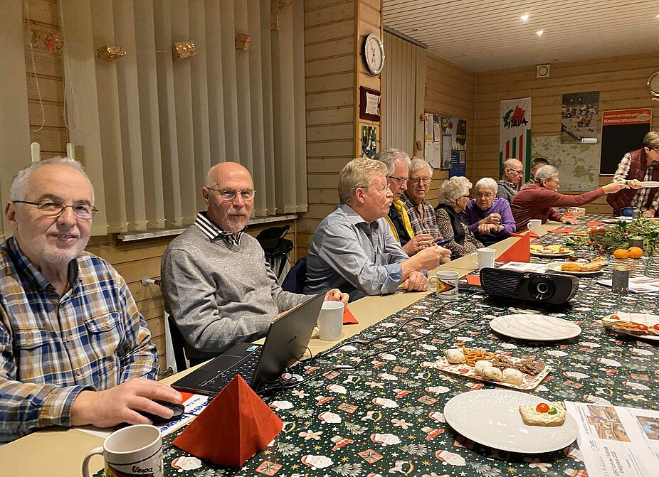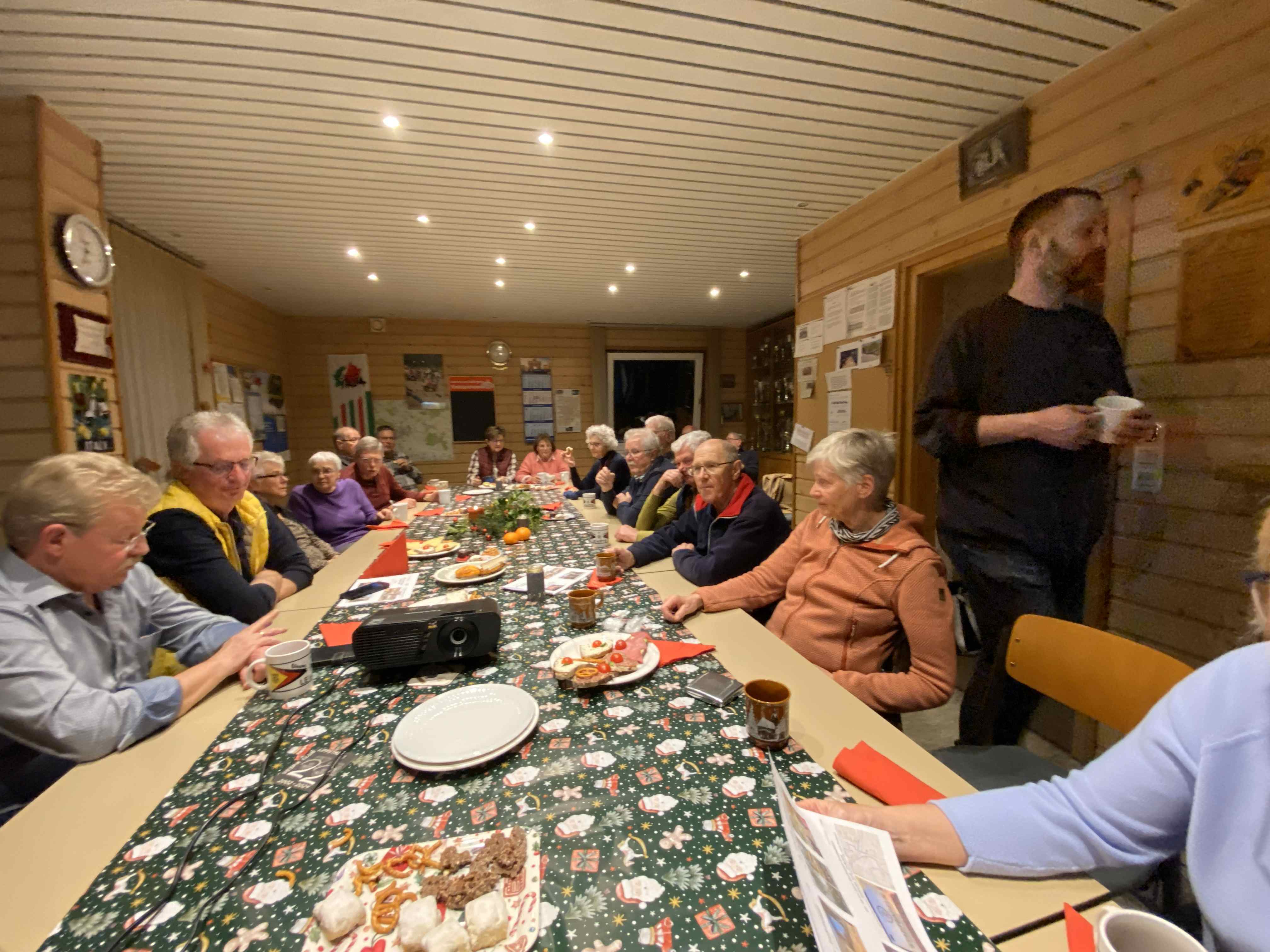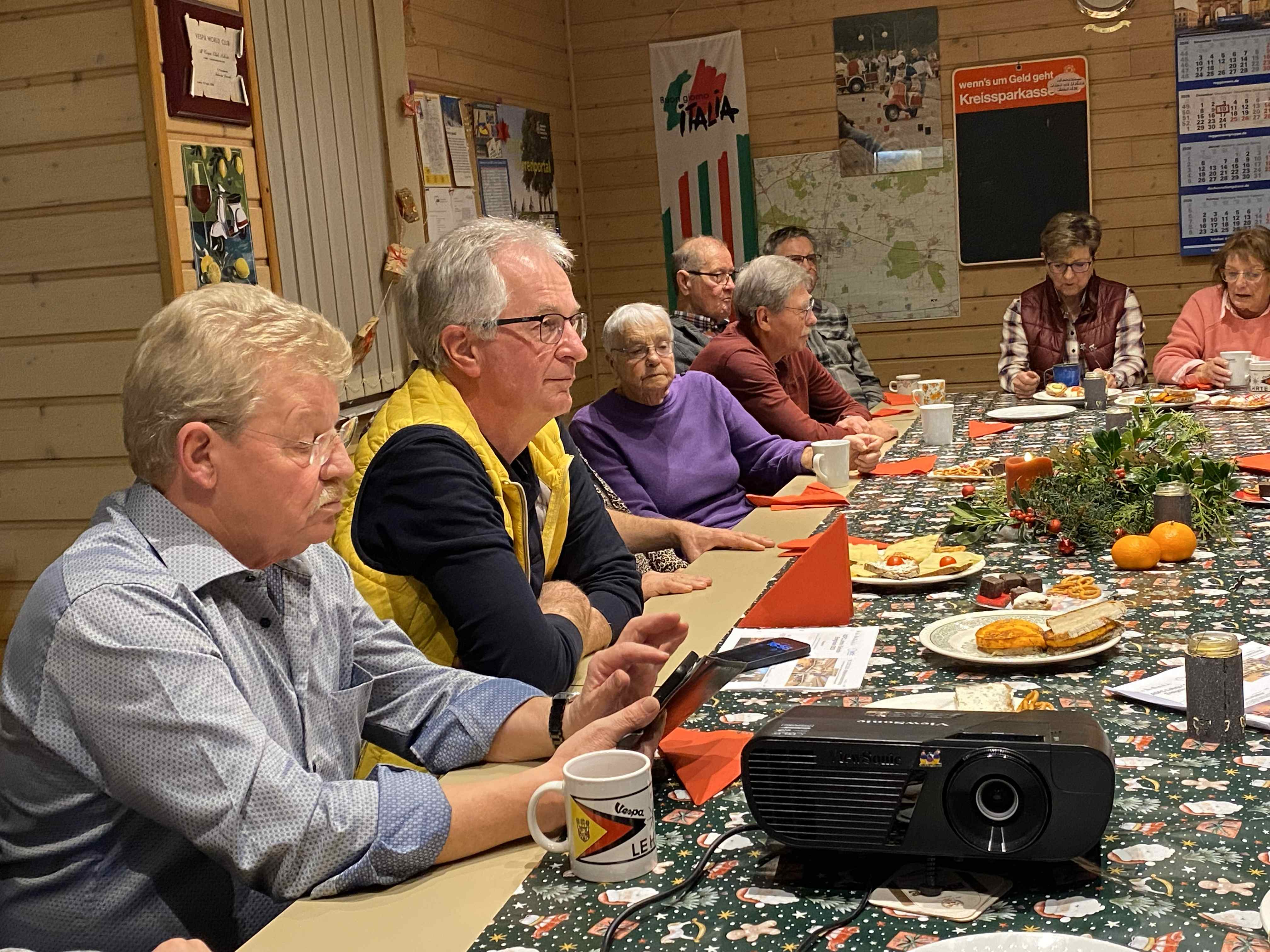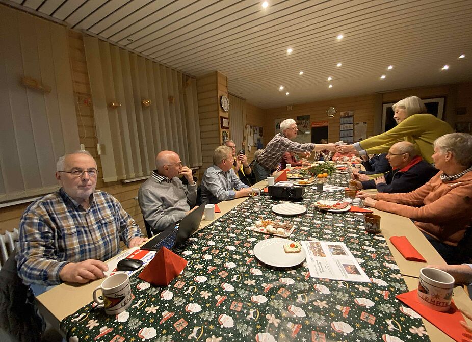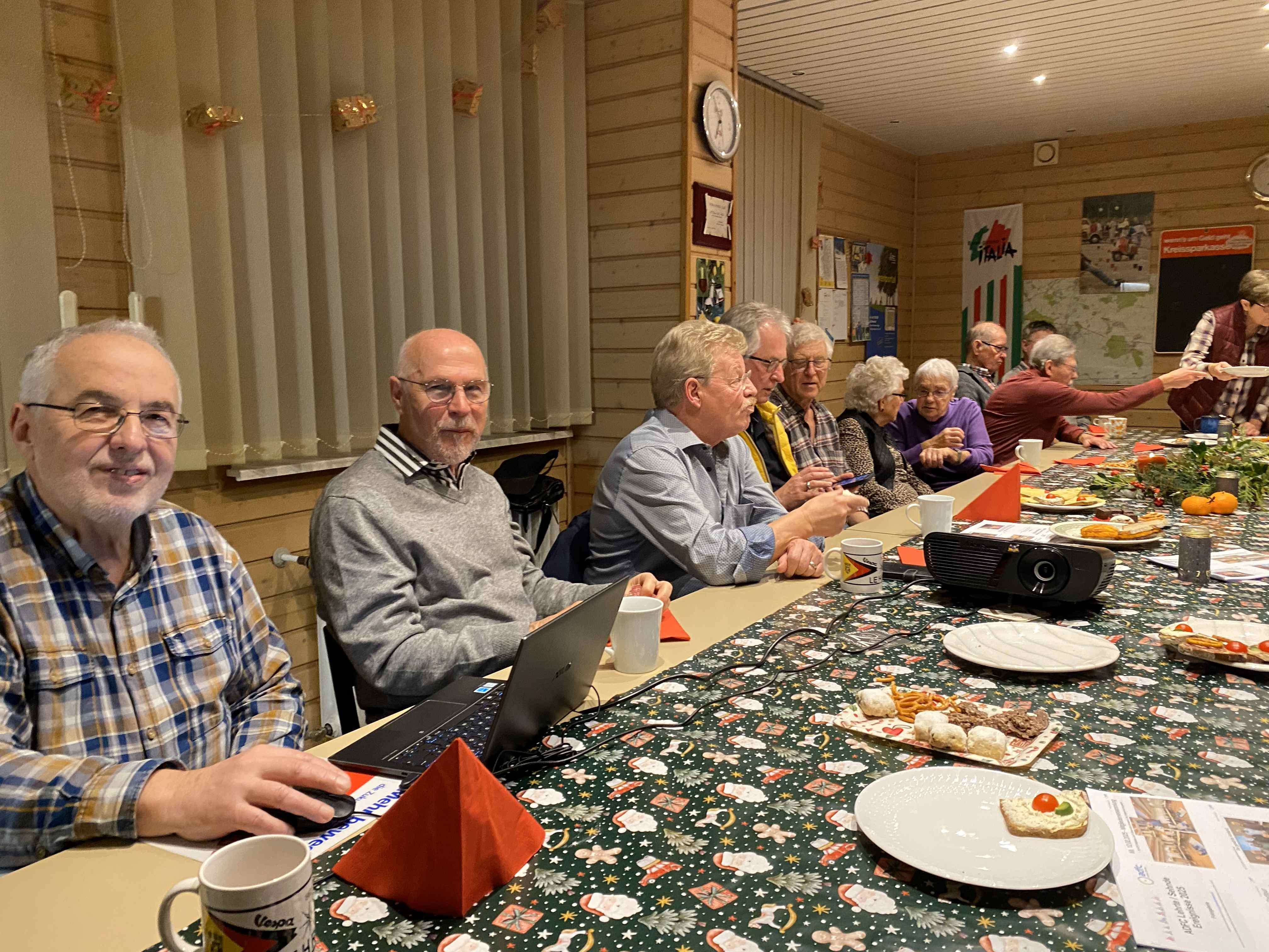 Vorbereitet wurde der Jahresabschluss von den fleißigen Helferinnen / Helfern. Ein weihnachtlich gedeckter Tisch sorgte bei den über 30 Anwesenden für vorweihnachtliche Stimmung. Begrüßt wurden sie von Michael Schmand. Manfred Hoffmann zeigte eine Fotoshow über die Ereignisse 2025. Eine Ausblick über das Jahr 2026 mit geplanten Radtouren gab Wolfgang Traut. Dies kam sehr gut an. So gingen / radelten die Leute abends gesättigt und gut gelaunt nach Hause.