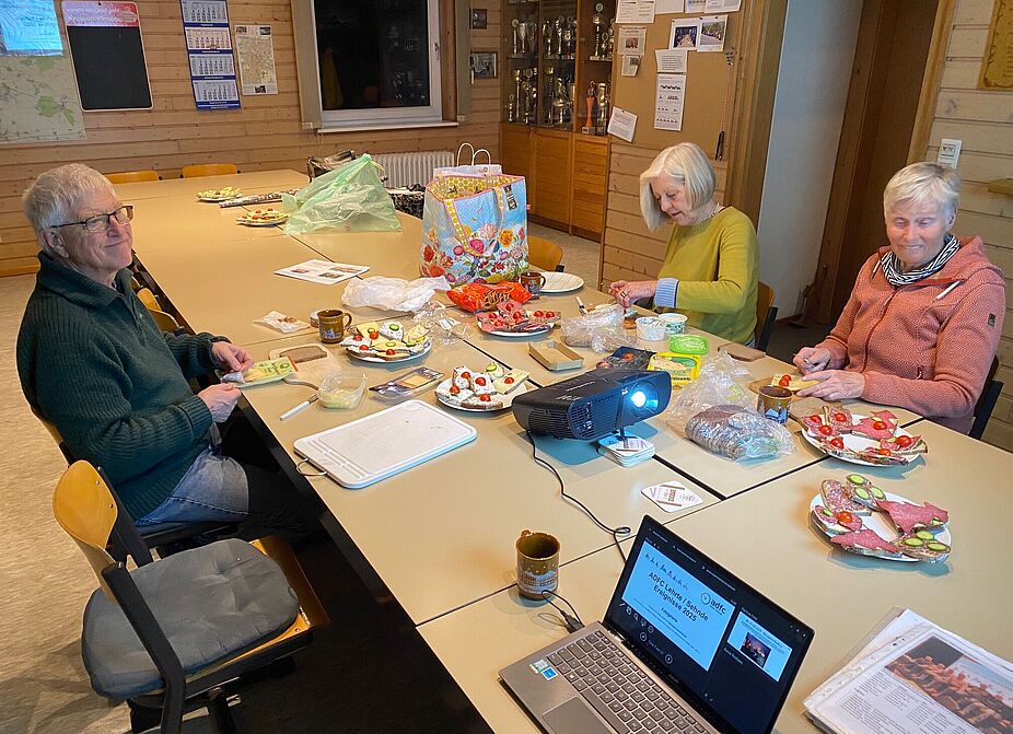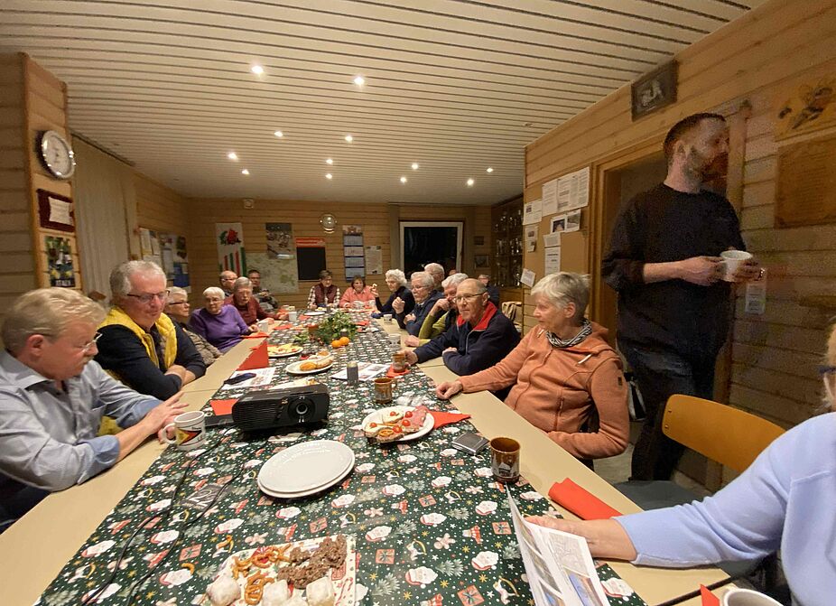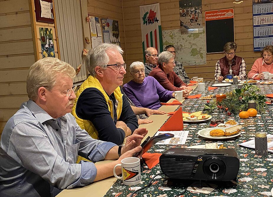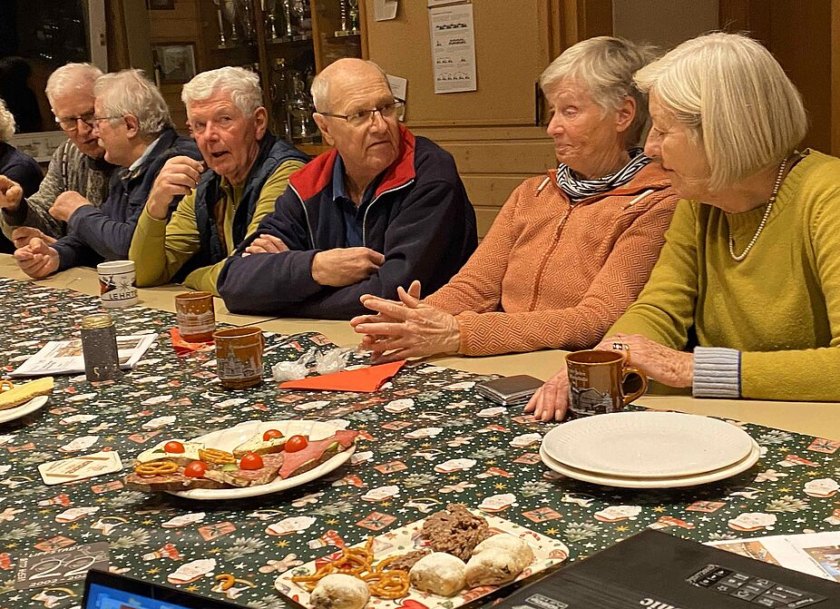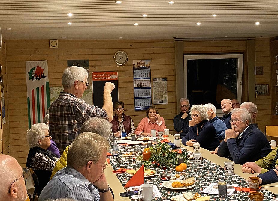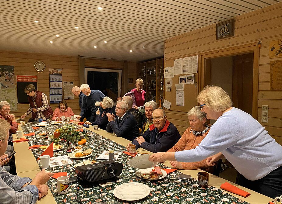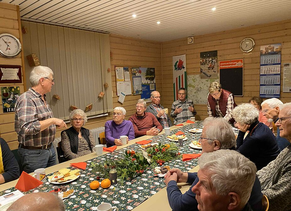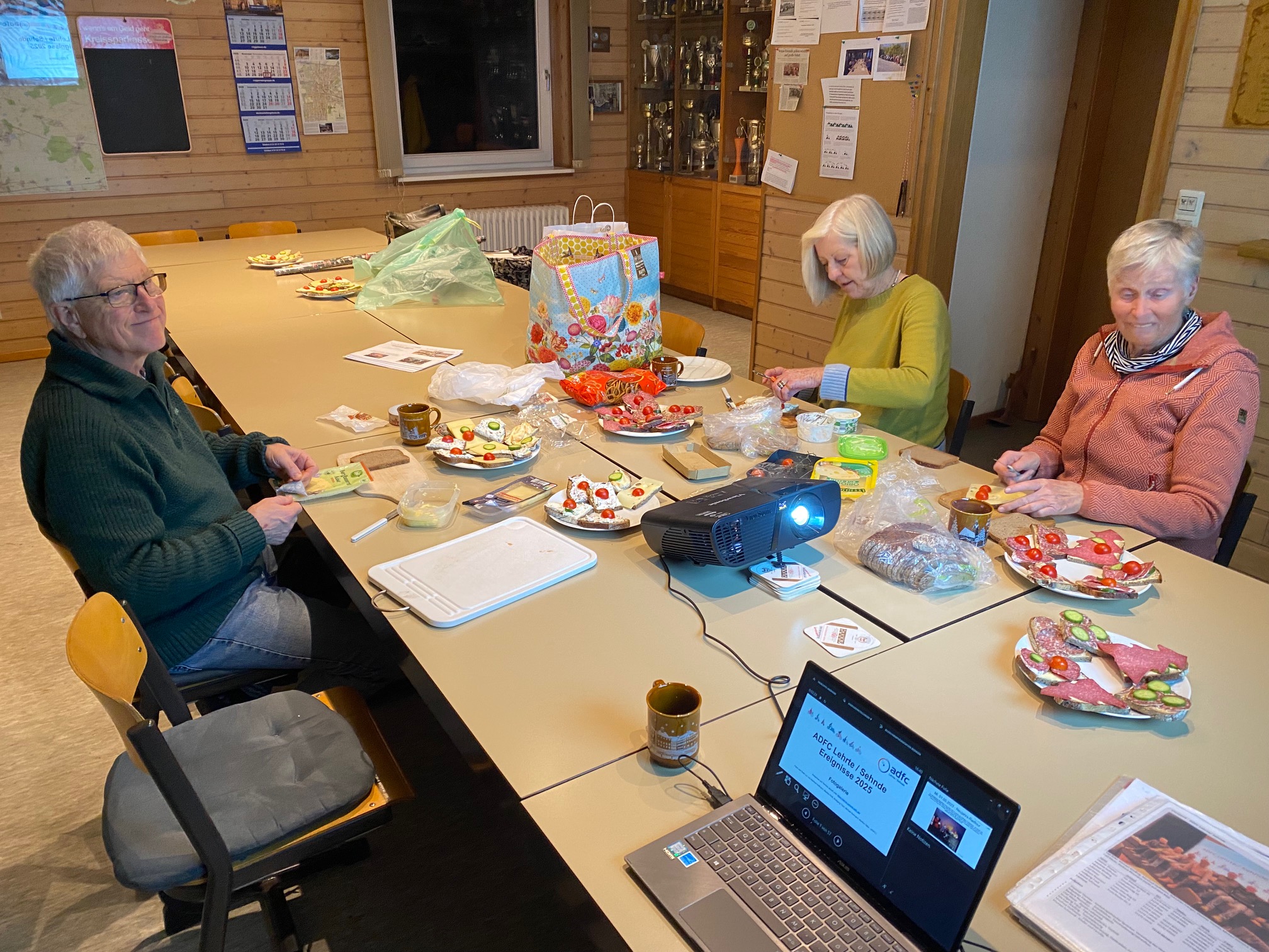 Vorbereitet wurde der Jahresabschluss von den fleißigen Helferinnen / Helfern. Ein weihnachtlich gedeckter Tisch sorgte bei den über 30 Anwesenden für vorweihnachtliche Stimmung. Begrüßt wurden sie von Michael Schmand. Manfred Hoffmann zeigte eine Fotoshow über die Ereignisse 2025. Eine Ausblick über das Jahr 2026 mit geplanten Radtouren gab Wolfgang Traut. Dies kam sehr gut an. So gingen / radelten die Leute abends gesättigt und gut gelaunt nach Hause.